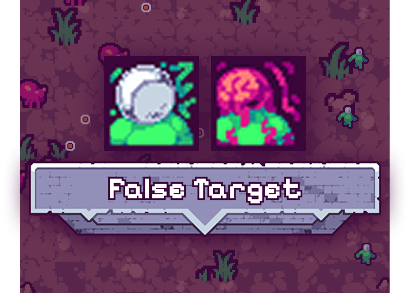 False Target is a fast-paced action game set in an underground world ruled by the living network of the Mycelia. Here, nothing is as it seems: colors deceive, shapes mislead, and allies you once trusted can turn deadly, while old enemies may unexpectedly save you.